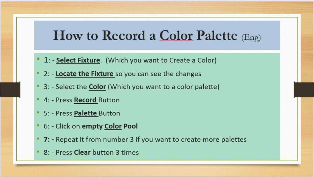 Welcome to Recording a Color Palette Lorem ipsum dolor sit amet, consectetur adipiscing elit. Ut elit tellus, luctus nec ullamcorper mattis, pulvinar dapibus leo. Lorem ipsum dolor sit amet, consectetur adipiscing elit. Ut elit tellus, luctus nec ullamcorper mattis, pulvinar dapibus leo. Lorem ipsum dolor sit amet, consectetur adipiscing elit. Ut elit tellus, luctus nec ullamcorper mattis, pulvinar dapibus leo. Click on Previous for Copy, Move and Delete GruopClick on NEXT for Recording Gobo Palette Previous Home Titan Home Next