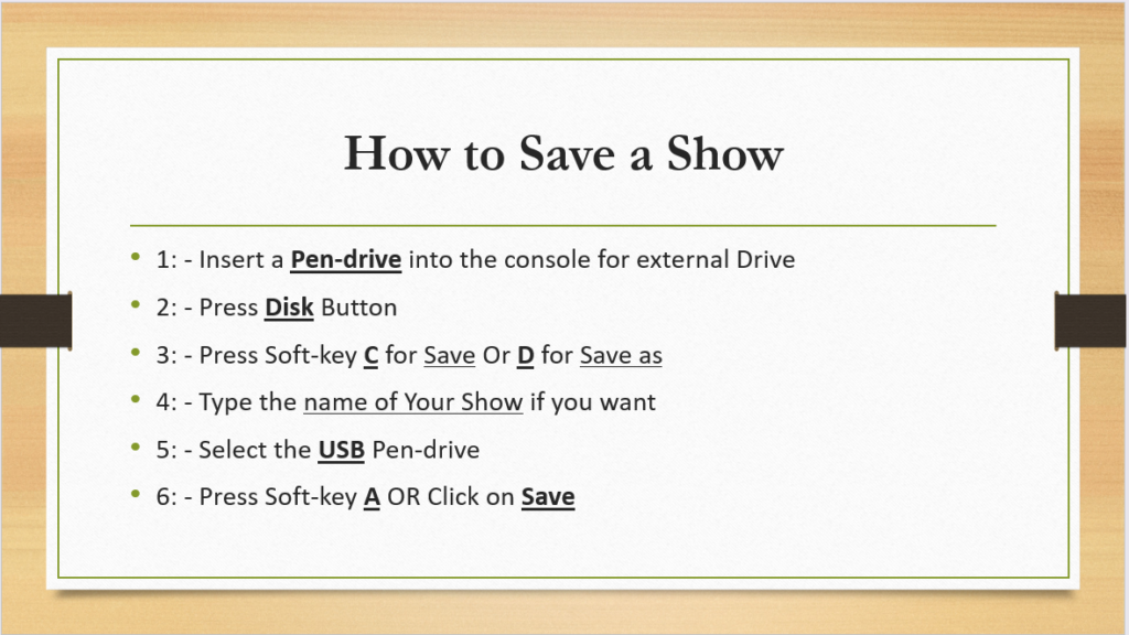 Here you will find to save a show in Eng